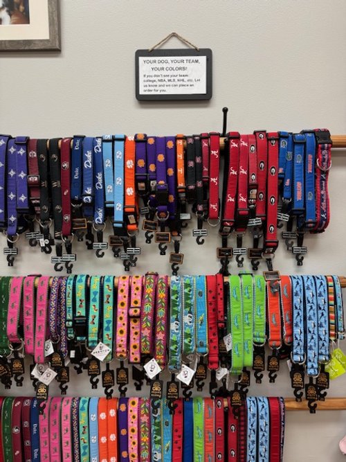 We offer a wide variety of upscale, quality collars, leashes and harnesses and encourage you to bring your dog in so we can assist you with custom fitting. Chose-Free Mesh Harnesses are a great option for the little guys/gals to protect their tracheas and our walking harness is a great option for puppies in training and pullers.